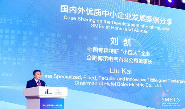 董事長(zhǎng)劉凱先生,代表中國(guó)的企業(yè)站在了論壇的分享舞臺(tái)上,劉總侃侃而談,以親身經(jīng)歷講述了博雷電氣投身時(shí)代、緊跟國(guó)家政策,十余載深耕行業(yè),解決“卡脖子“難題,成長(zhǎng)為”專精特新“小巨人的奮斗歷程.